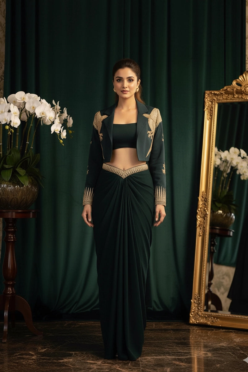 Bottle Green Velvet Suit with Dupatta | Winter Suits for Women | Heavy Zari Velvet Suit Design